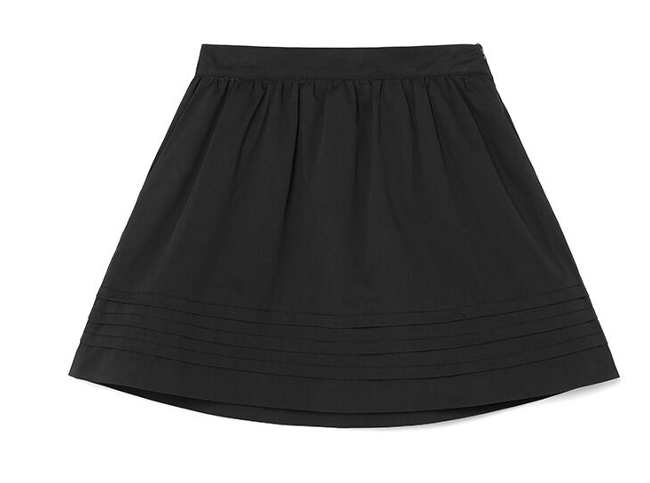밑단에 핀턱 디테일이 들어가는 미니 플레어스커트입니다.